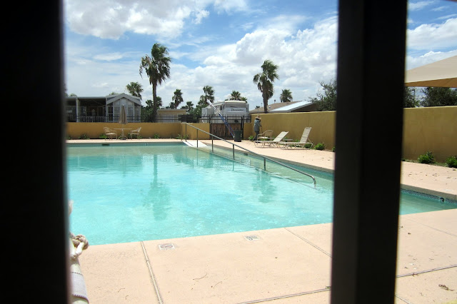 Another HUGE project is to redo the swimming pools. They'll start with the big pool first by draining it, resurfacing the entire bottom, retiling, painting, etc. Then the kool deck area will be redone around the pool. When that pool is completed, they'll start at the north pool. Sure am glad we'll always have access to a pool or my summer wouldn't be near as complete. It's too hot to swim during the day but it is perfect just as the sun goes down.