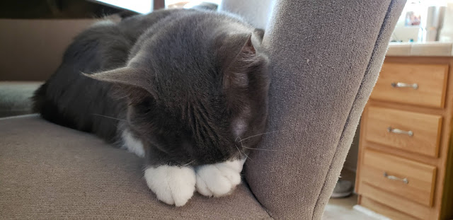 Don caught this cute picture of Mouse taking an afternoon nap and trying to block out the bright sunshine.